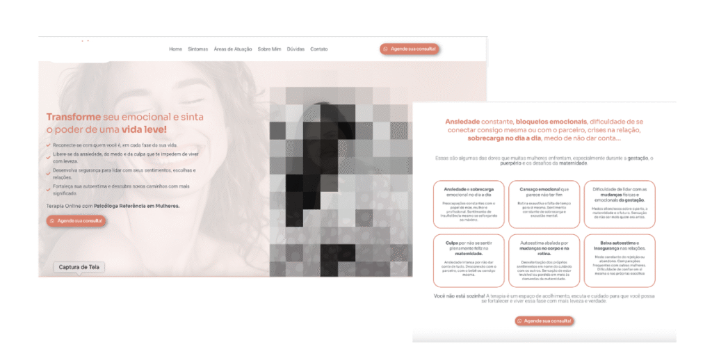 Site Psicologa Todos os sites são de clientes reais e para sigilo da imagem todas as imagens pessoais, nomes e logos foram censurados. Voltar para o Site Entar em contato!