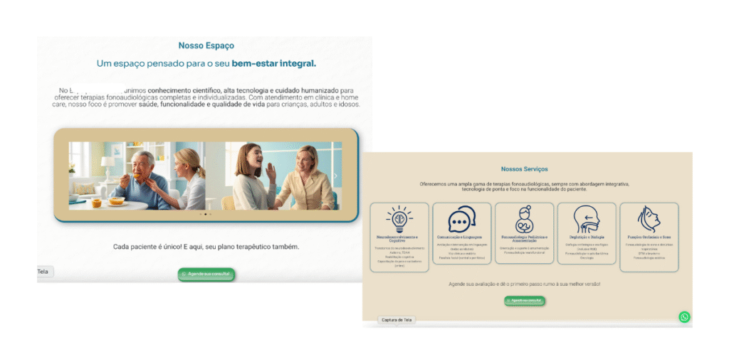 Site Clínica Todos os sites são de clientes reais e para sigilo da imagem todas as imagens pessoais, nomes e logos foram censurados. Voltar para o Site Entar em contato!